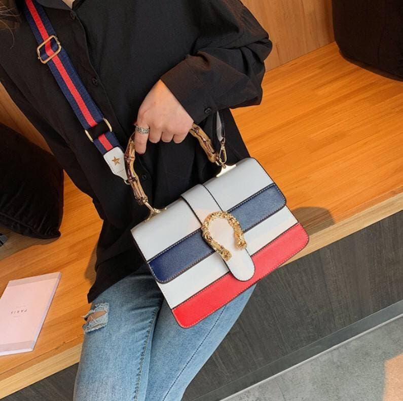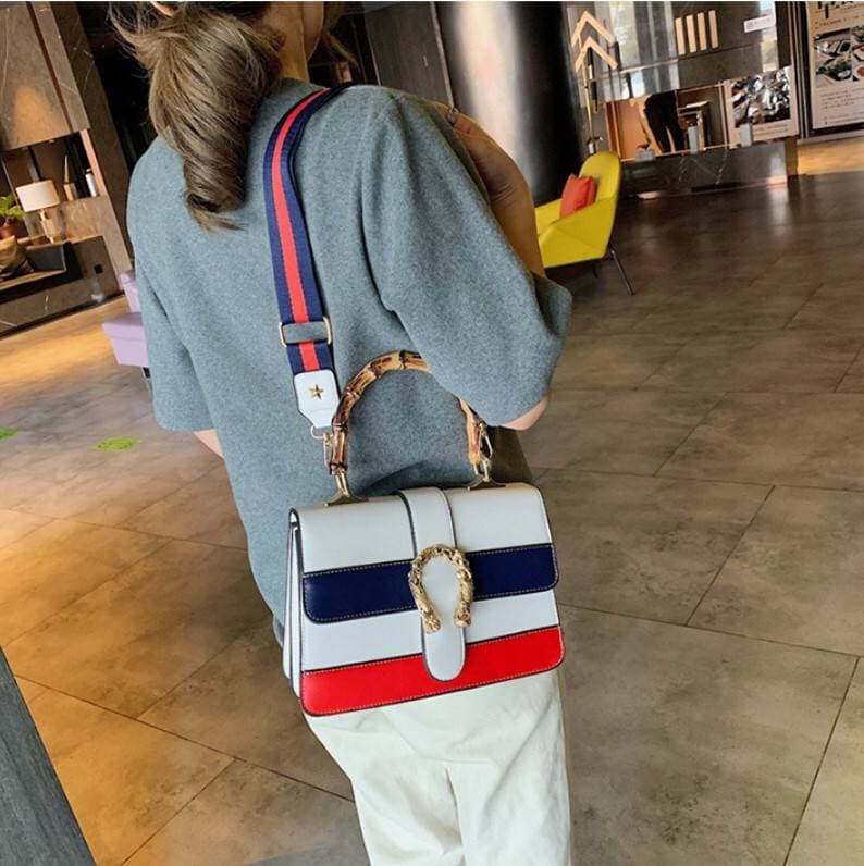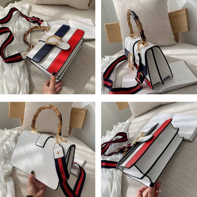 แบบใหม่ล่าสุด งานสวยใบใหญ่ ด้านหน้าแต่งอะไหล่สีทองสไตล์กุชชี่